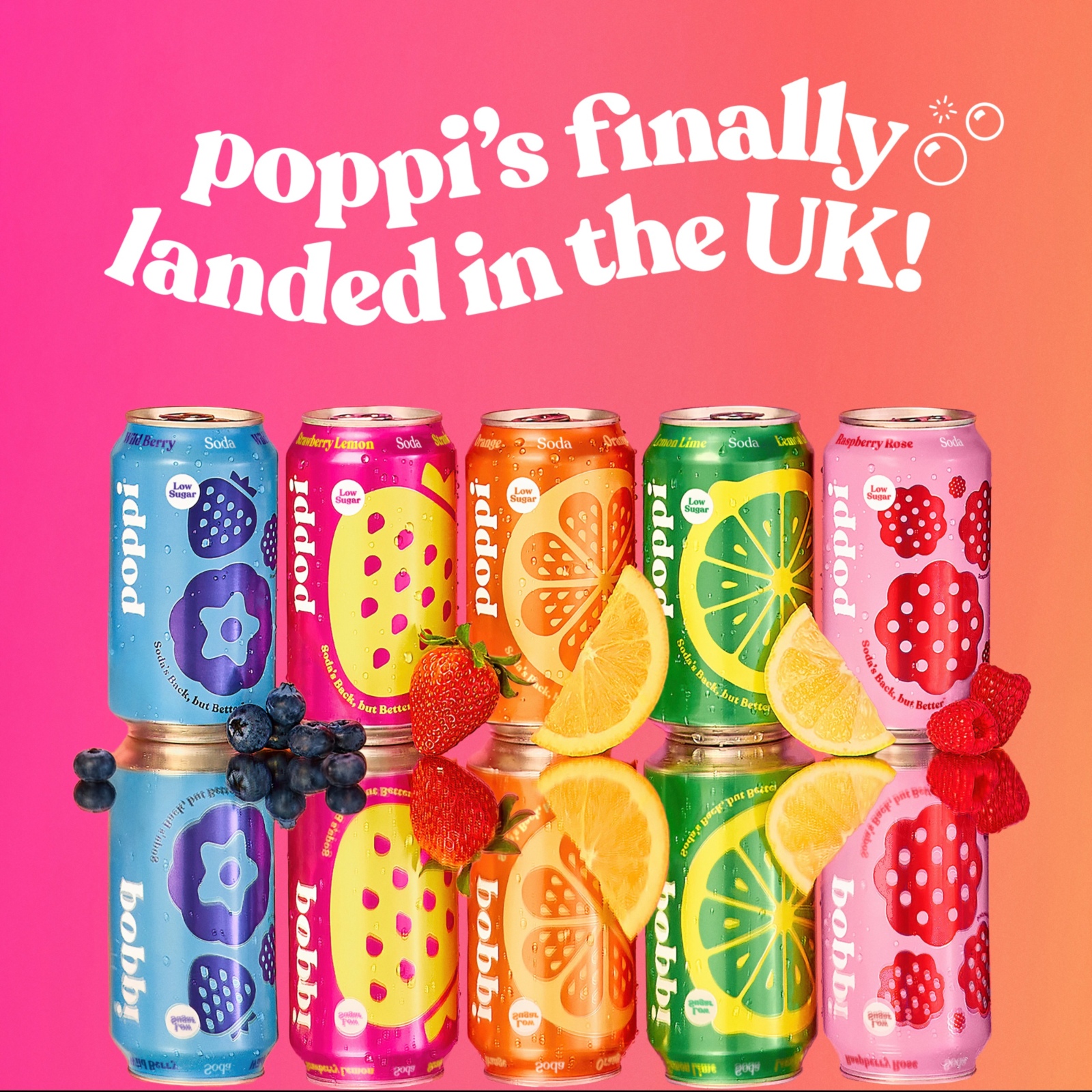 poppi will be available in 330ml cans, sold both individually and in four-packs across all five flavours - Strawberry Lemon, Orange, Raspberry Rose, Lemon Lime and Wild Berry. poppi is launching in the UK on 5 March. Available in Tesco & Pret nationwide, before rolling out more widely later in the year.